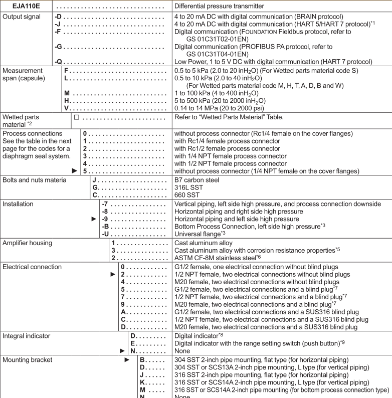 Take this model as an example to explain EJA110EJMS4GU12DK/NF2. After reading it, we will know how to select the correct model with known parameters.